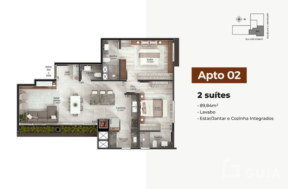 O empreendimento conta com apartamentos de 2 e 3 suítes, coberturas exclusivas e mais de 700m2 de área condominial de lazer, incluindo academia, salão de festas, brinquedoteca, playground, espaço pet e muito mais.
