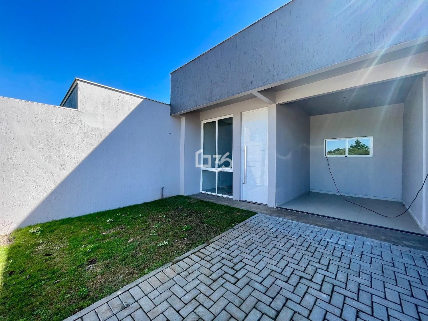 Casa entregue com gramado frente e fundos, trilhos com rampa para o carro e pisantes até a