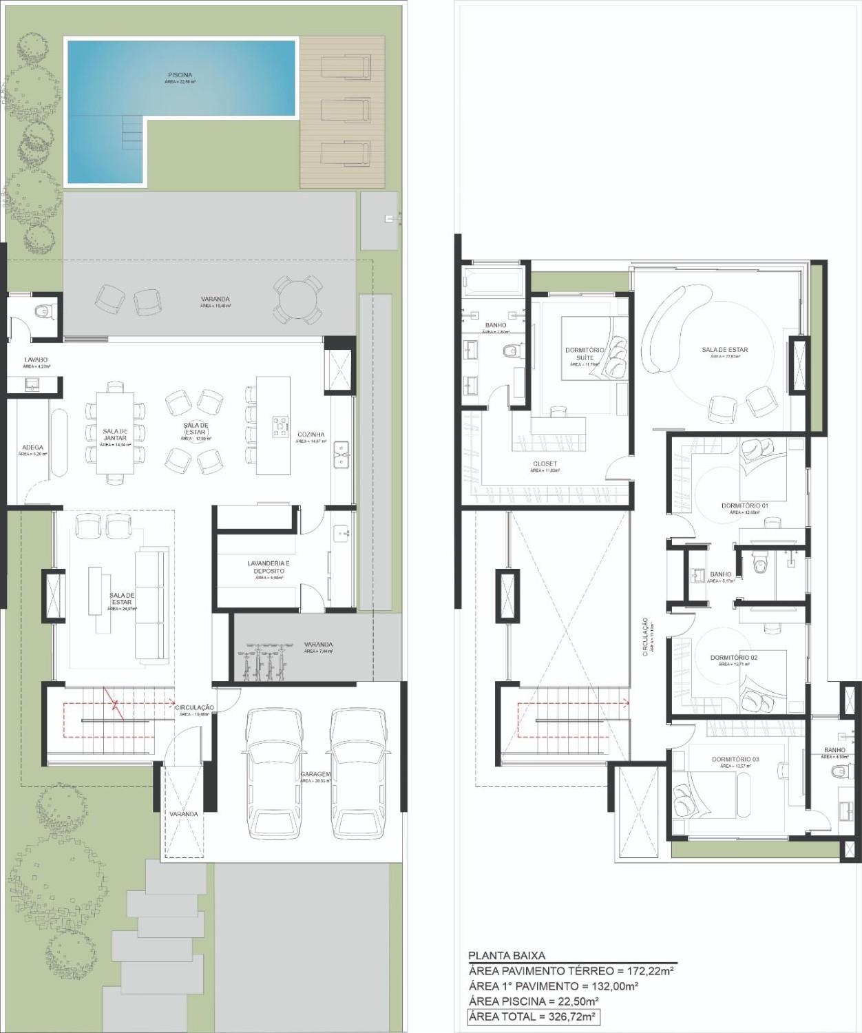 Área piscina (construída): 22,50 m²