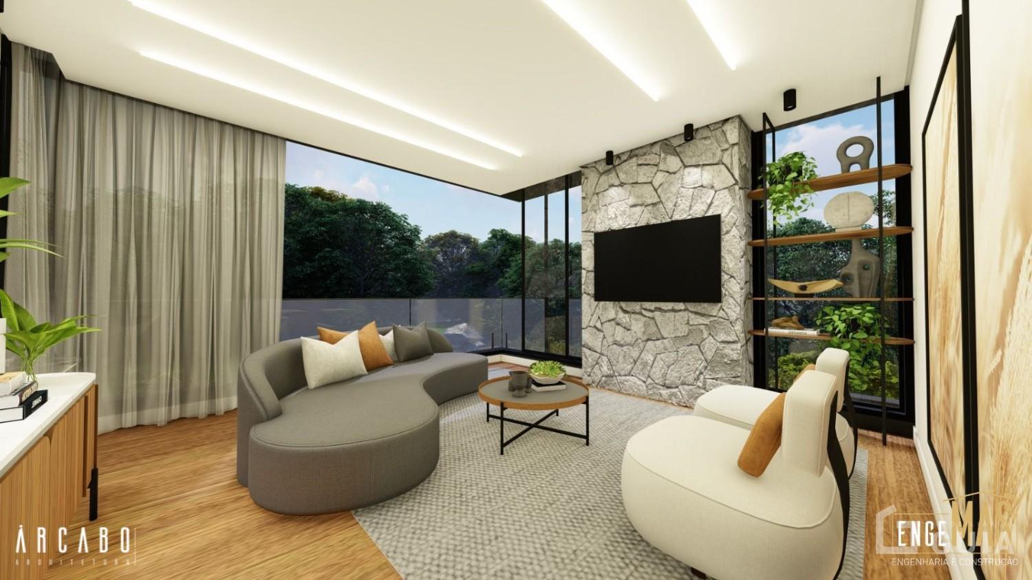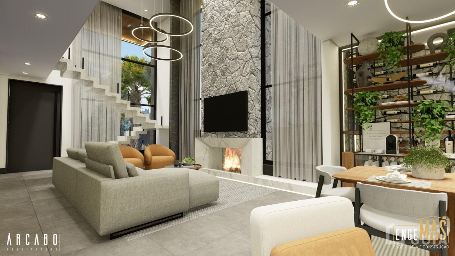 - Sala de estar no térreo e no piso superior, com lareira;