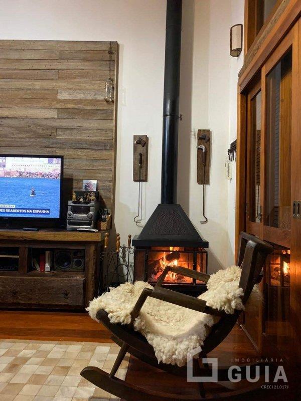 Permanece no sítio todos os móveis projetados, rústicos, fogão a lenha e lareira.